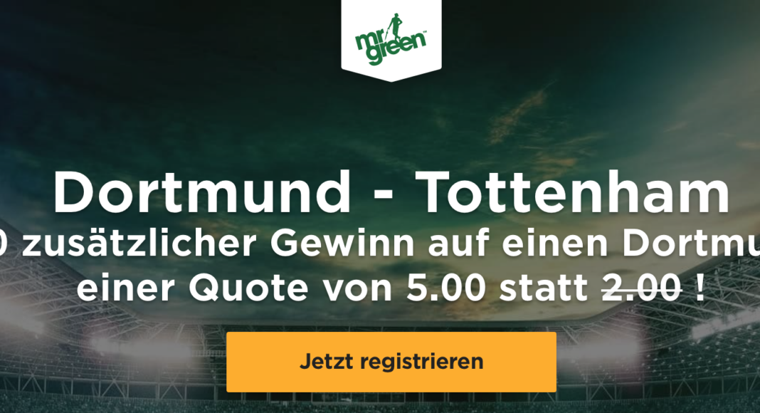 Für Neukunden hebt MrGreen die Quote für einen Dortmund-Sieg in der CL auf 5.00 an