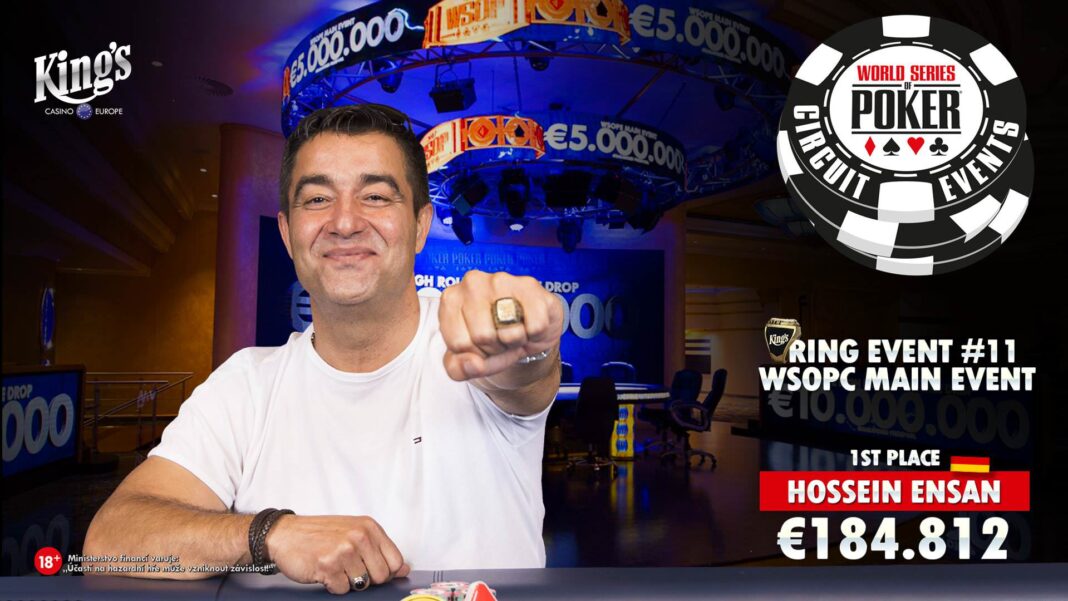 Hossein Ensan jubelt nach deutschem Dreifachsieg über den WSOPC Main Event Ring