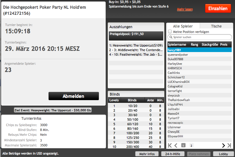 Hochgepokert Turnier auf PartyPoker – Alle Details zum Turnier am Dienstag den 29.03