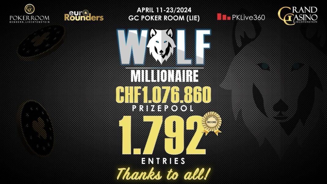 WOLF Millionaire Liechtenstein stellt mit 1.792 Entries und CHF 1.076.860 einen neuen Rekord auf!