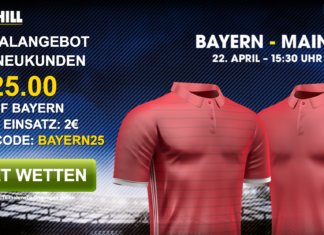 William Hill Spezialangebot – Quote 25,00 auf einen Bayern Sieg gegen...